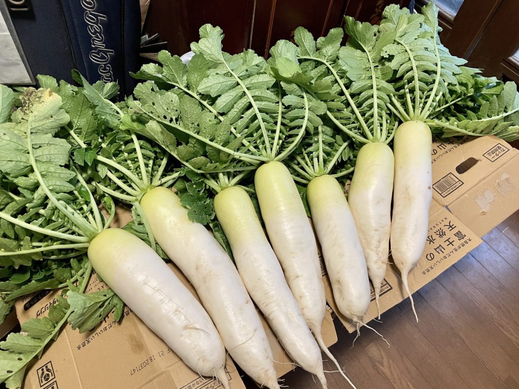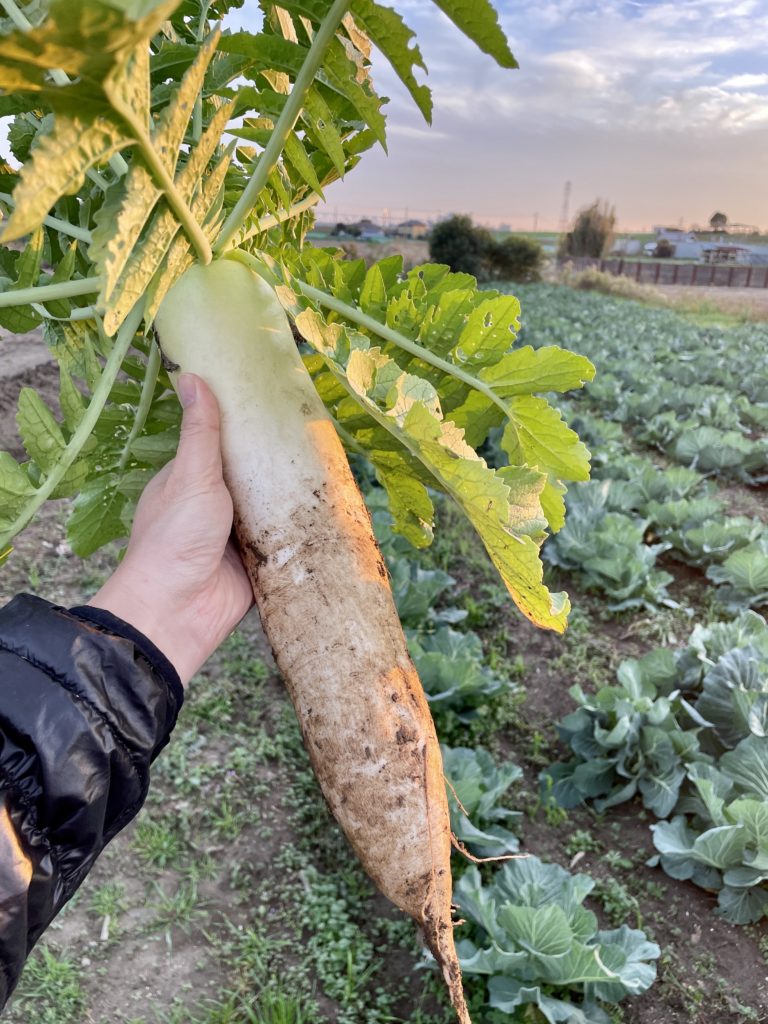 今回は、無農薬で栽培してみたので葉っぱは少し虫に食べられてしまいましたが、そこそこ形の良い立派な大根が採れました!